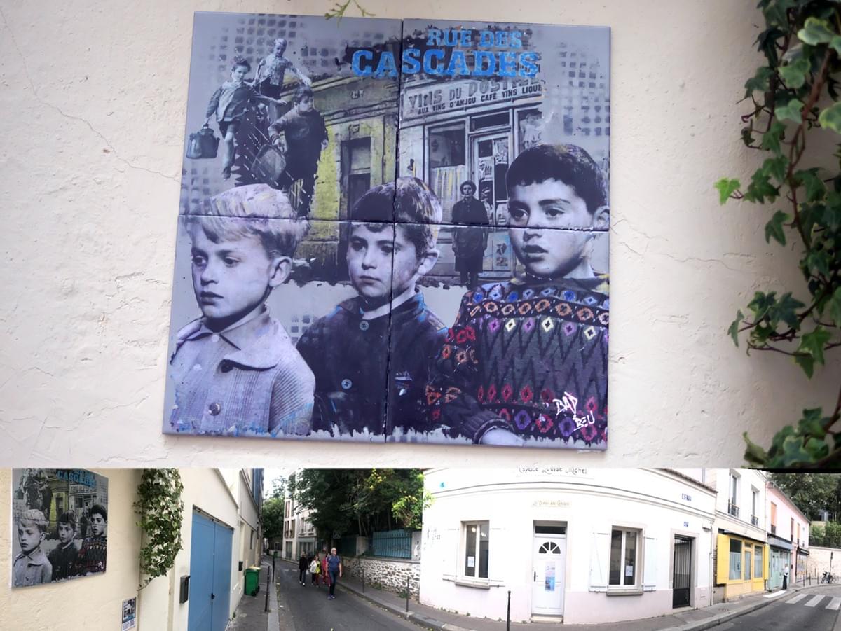 "Lors de recherches pour peindre une fresque rue des cascades en mai 2025 je découvre le film éponyme de Maurice Delbez tourné ici même en 1963. Après avoir visionné cette oeuvre d'avant-garde profondément humaine et trop méconnue je décide d'en projeter en peinture le souvenir sur un mur.